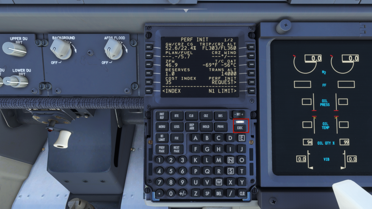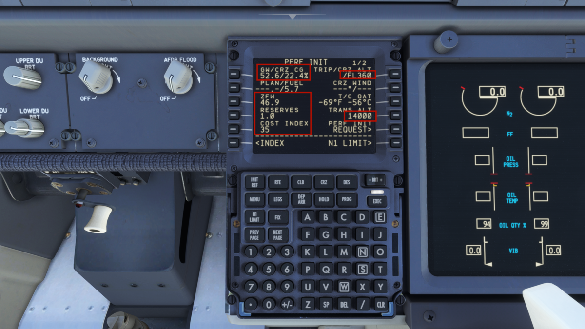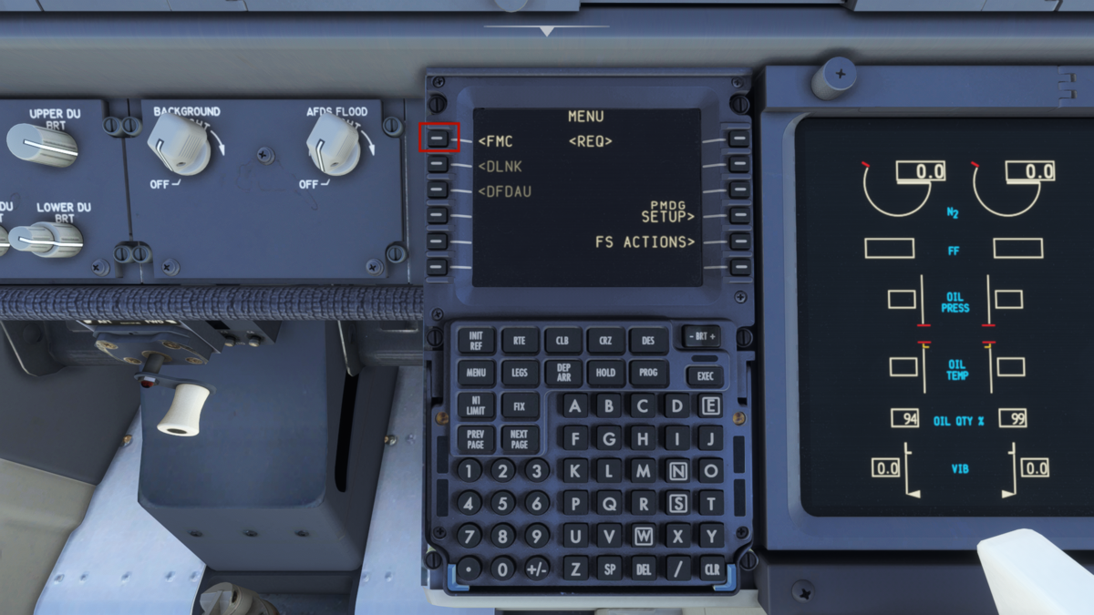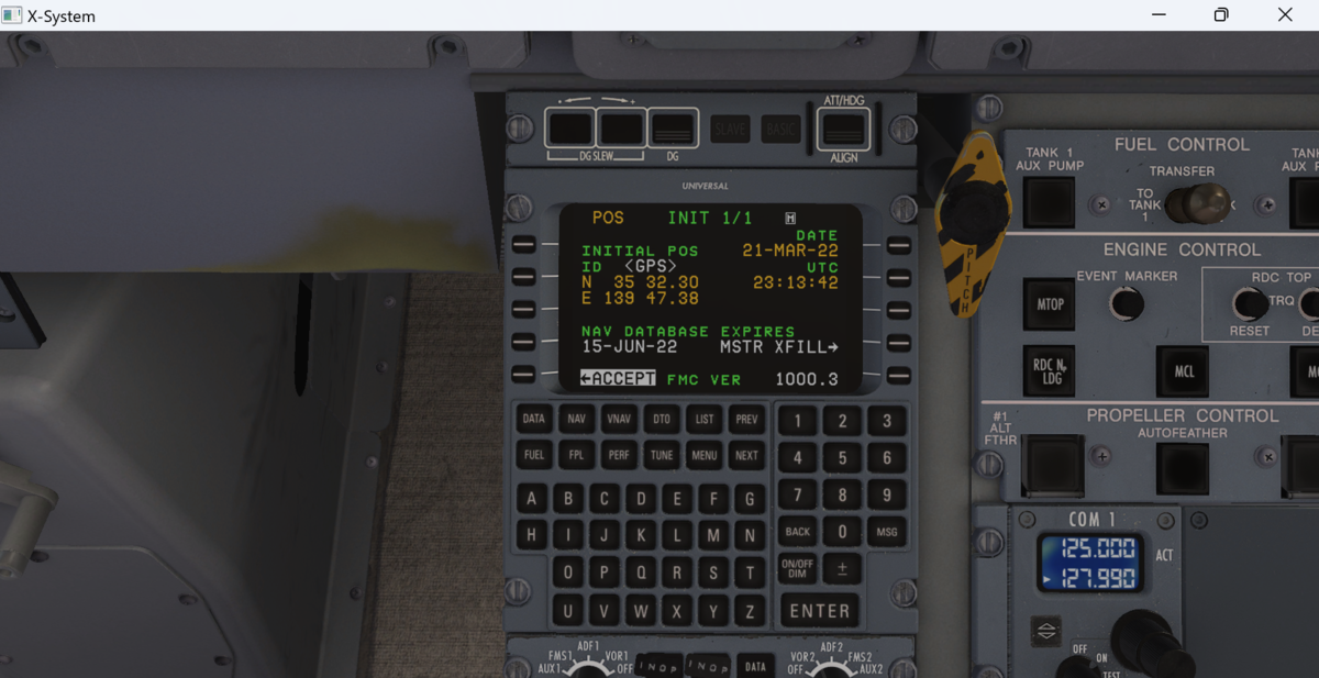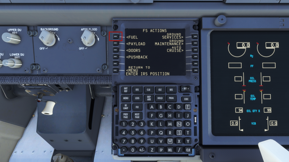 FMSの設定を始めます。INITページで各種情報を入力して、R4でINITIALIZE IRSでIRSを初期化します。