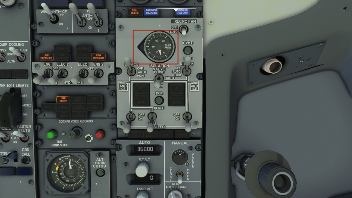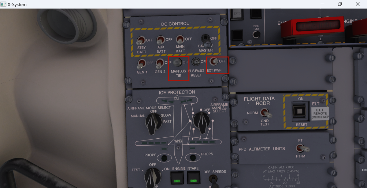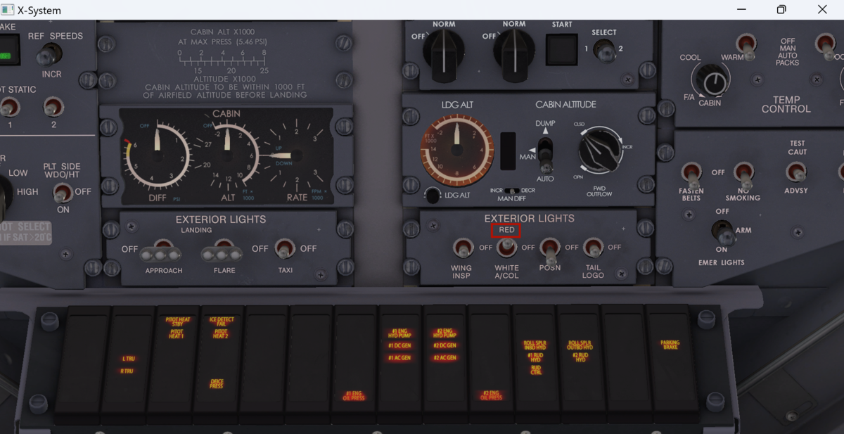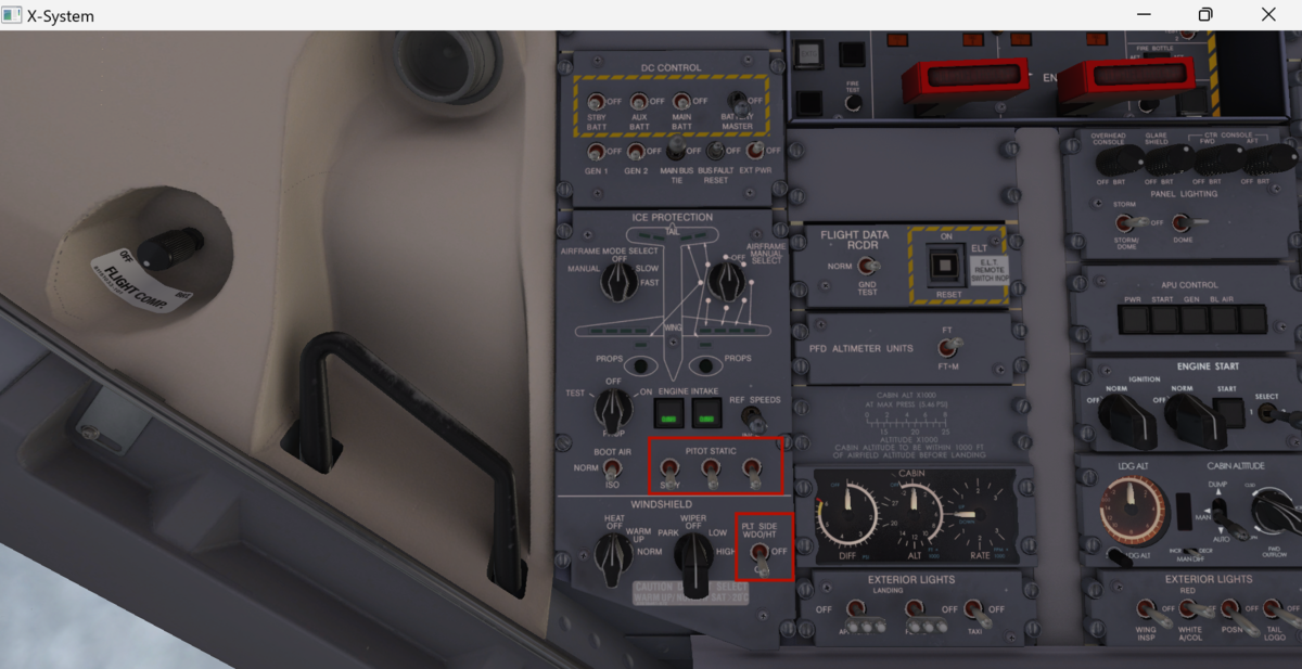 このように与圧系統がつながっていて、先程のX-FEEDバルプを開かないとAPUのBLEED AIRがエンジンのスターターまで届きません。