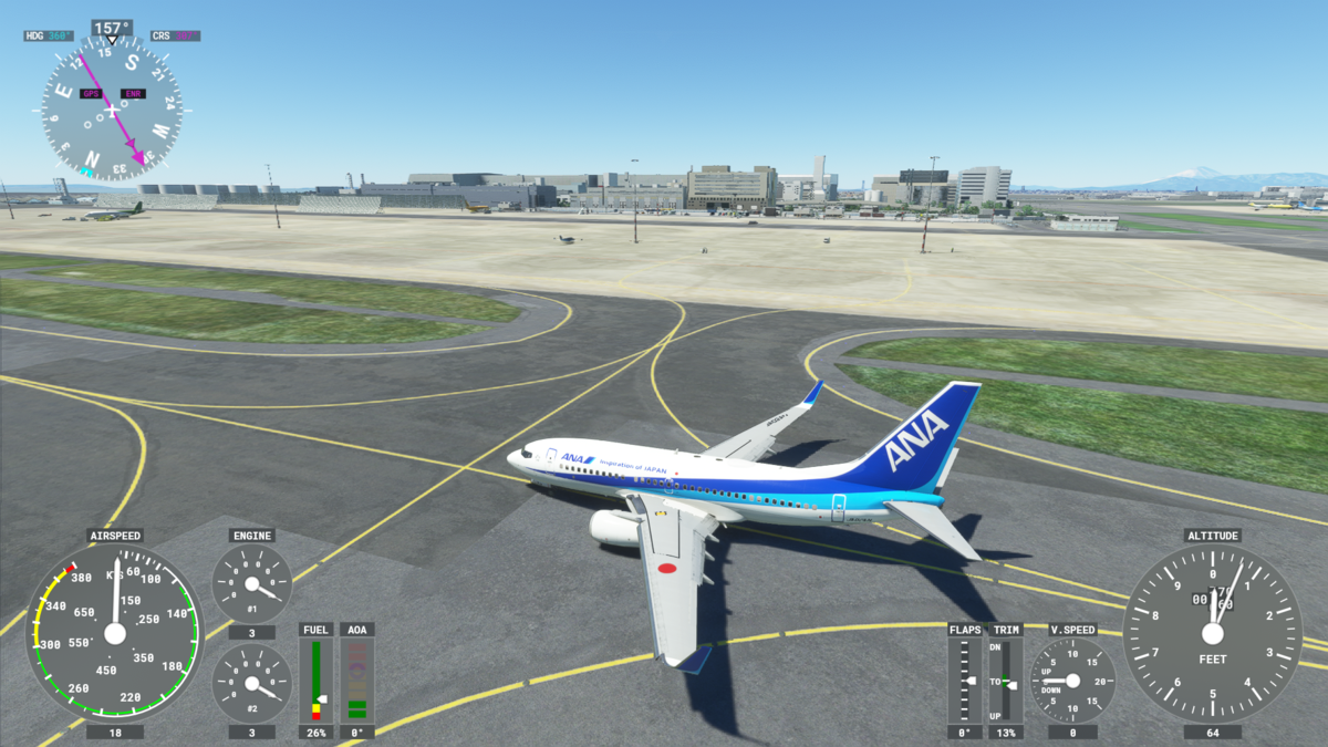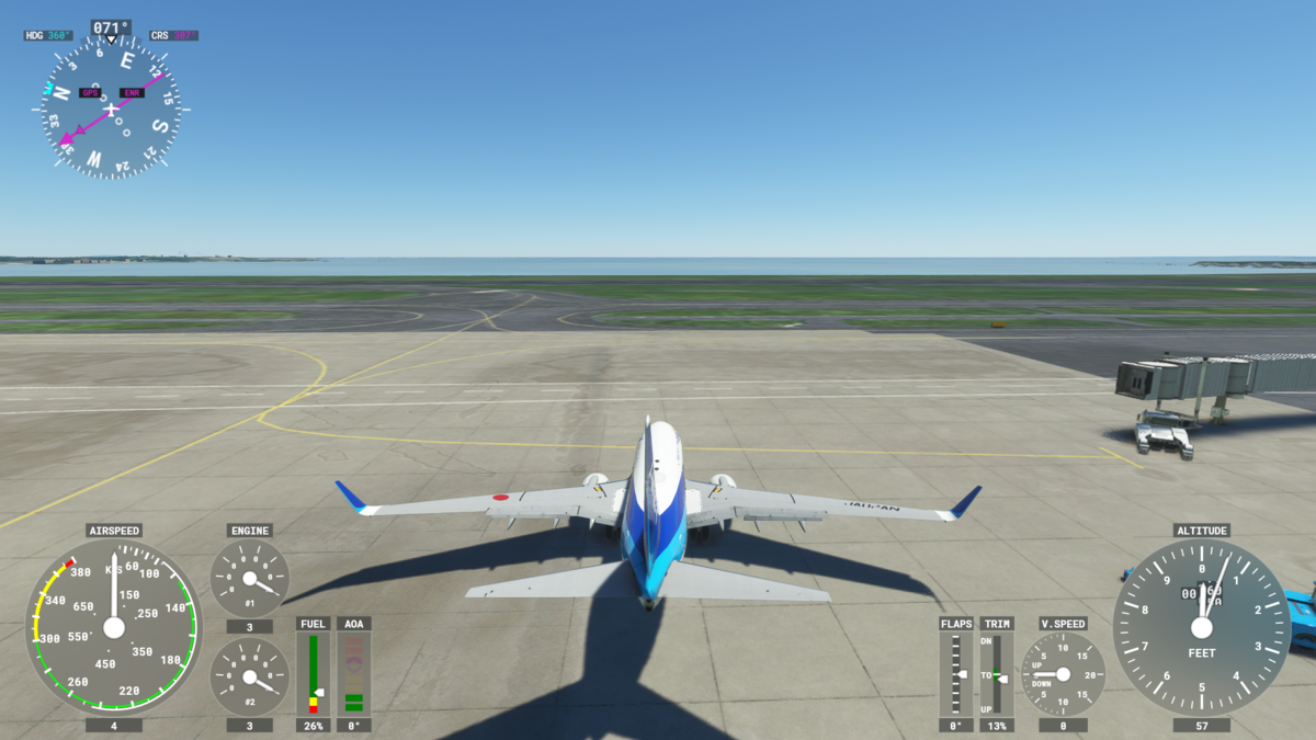 ロード直後の画面です。すべての計器がOFFになっています。