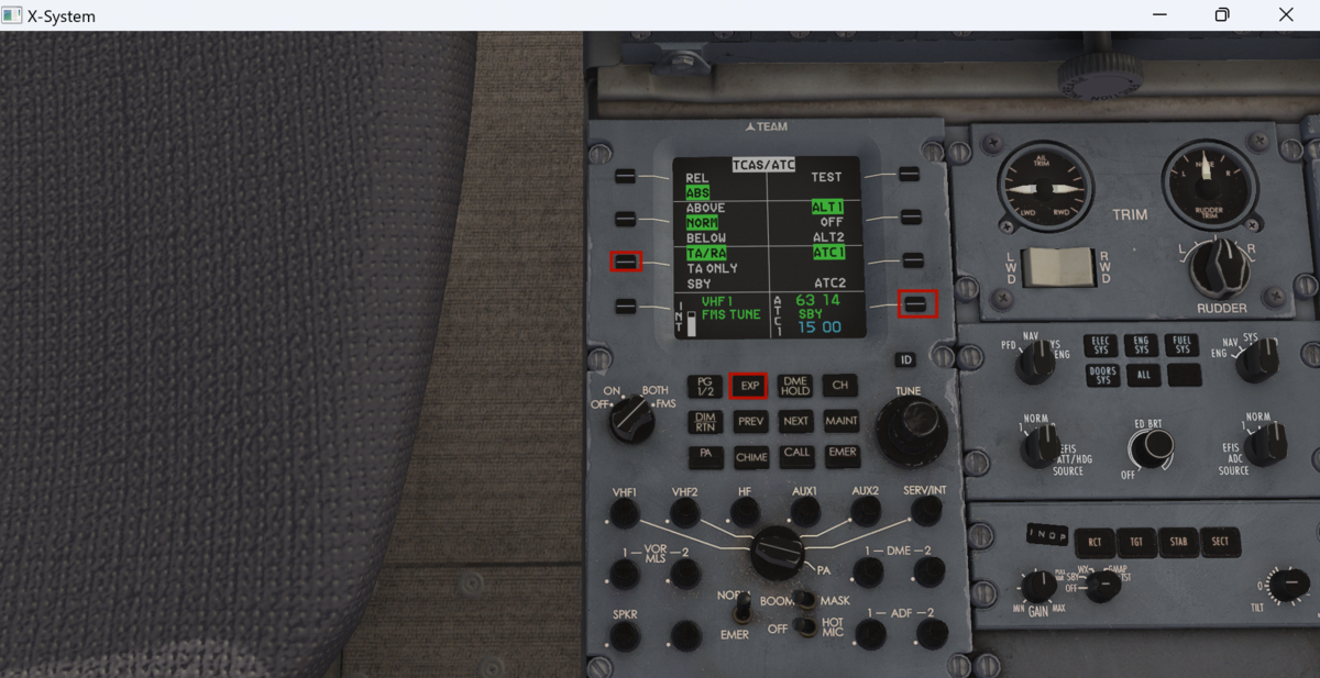 センタースクリーンにはCONFIGが表示されているので、操縦翼面を動かして正常に動作しているか確認します。
