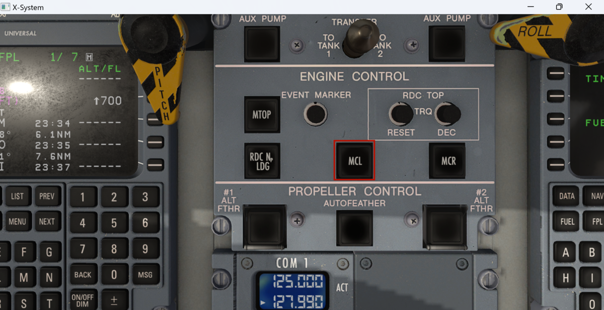 MD-82は飛行状態をTO(離陸推力)、TO FLX(FLX離陸推力)、GA(Go Around)、MCT(最大連続推力)、CL(上昇推力)、CR(巡航推力)と設定します。