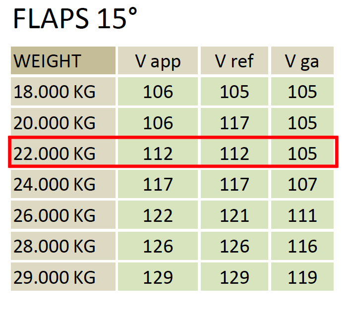 左上から空港名(RJTT)、離陸滑走路(16L)、先程メモしたTOWを入力してCALCボタンを押すと、離陸時のフラップ度数、V-speedがわかるのでメモしておきます。