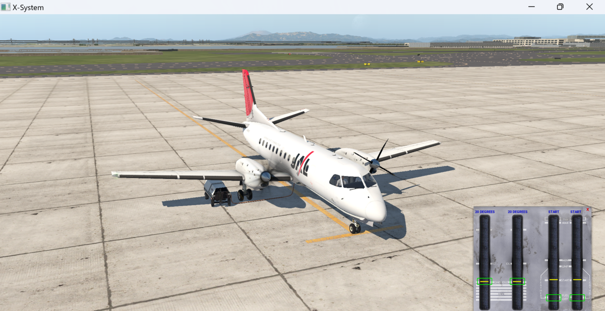 今回操縦するSaab 340Aは最も初期に生産された型です。APUは装備されておらずエンジン始動にGPUが必要だったり、基本的にはVOR航法オンリー(X-PlaneではGNS530が装備され使用可能です)なので中々古めかしいですが面白い航空機です。