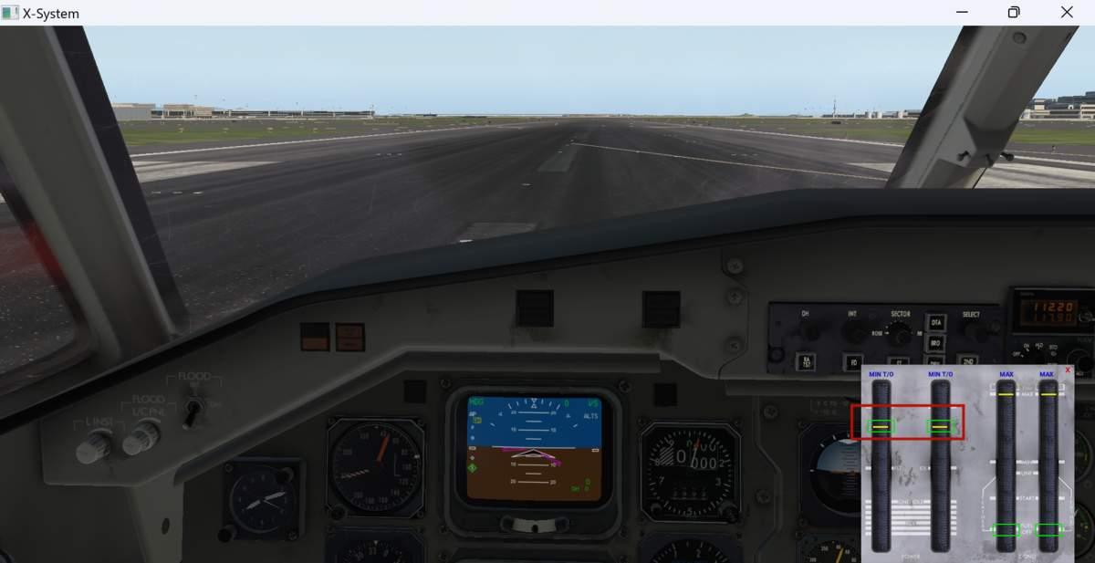 離陸時にパワーレバーを65°まで倒すと、自動的にCTOTが離陸推力を設定します。65°以上パワーレバーを倒すとCTOTは無効化されてパワーレバーの通りの推力が得られます。