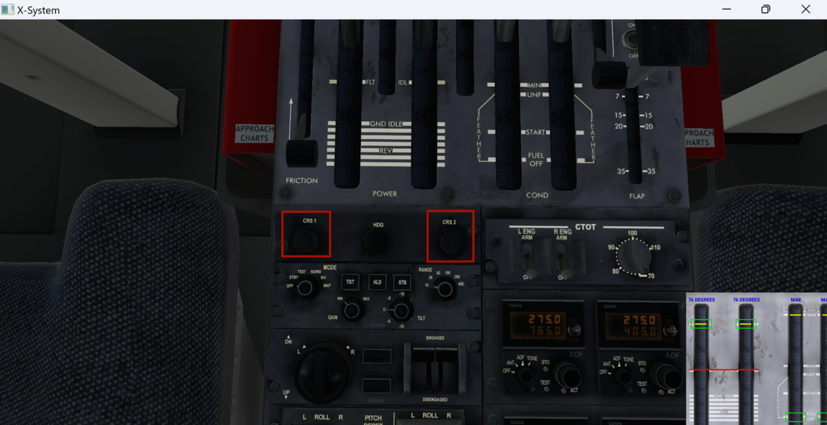 今回はMBEだけVOR誘導にしたいのでVOR周波数117.6MHzをNAV1&2に設定します。(本当はどちらか1つで良いです。)。左側を使用するのでNAV S Lを有効化しておきます。